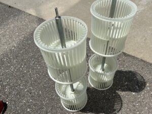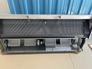天吊りタイプは形状上、一目で汚れが分かりづらいものとなっており分解すると一目瞭然で汚れ具合が分かるかと思います。大事なのは熱交換器、シロッコファン、ドレンパン内部などの清掃が特に重要になってきてエアコンの心臓部とも言える箇所です。